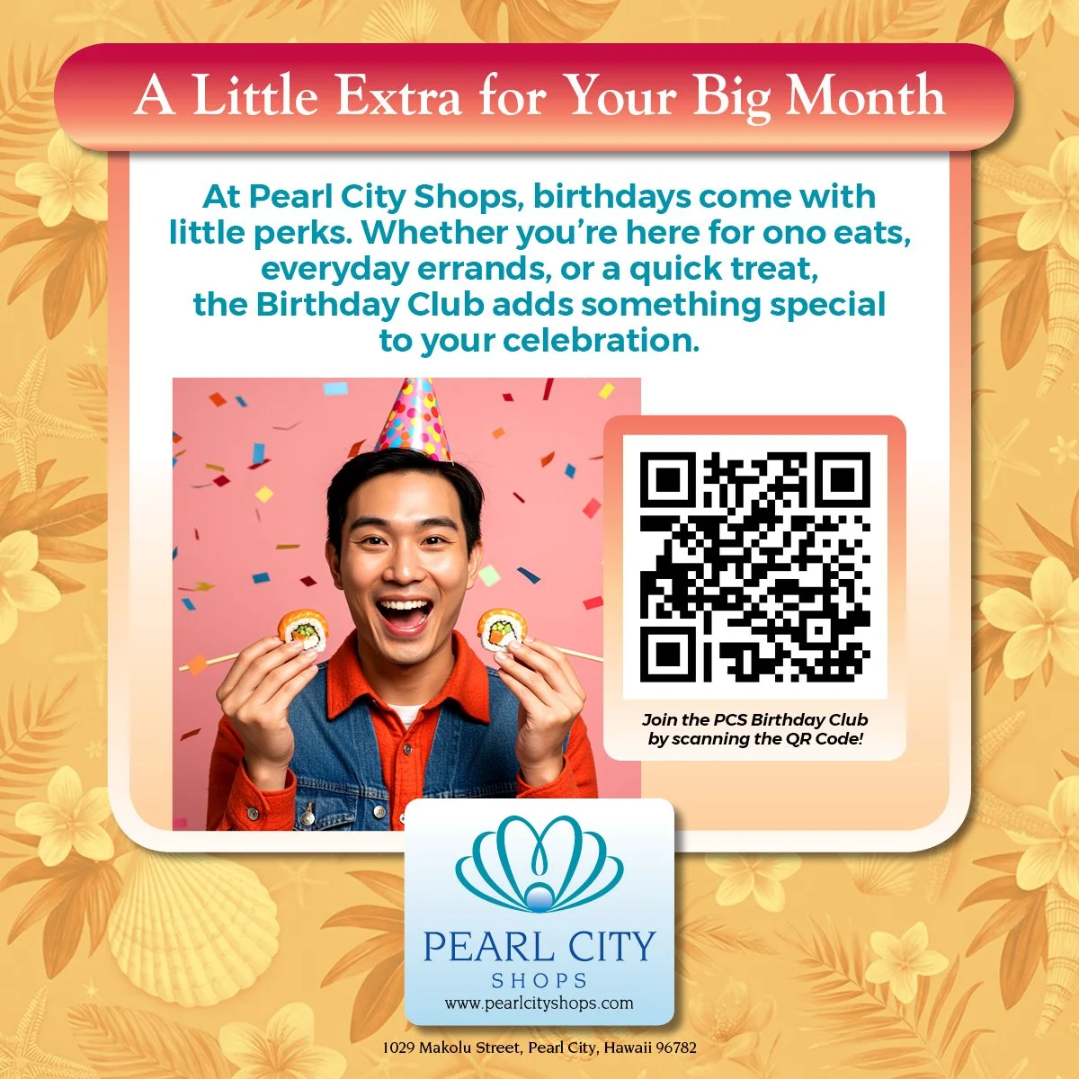The Birthday Club is a free rewards program that celebrates you during your birthday month! Members enjoy exclusive birthday perks from participating merchants, a chance to win monthly prizes, and a special birthday greeting.